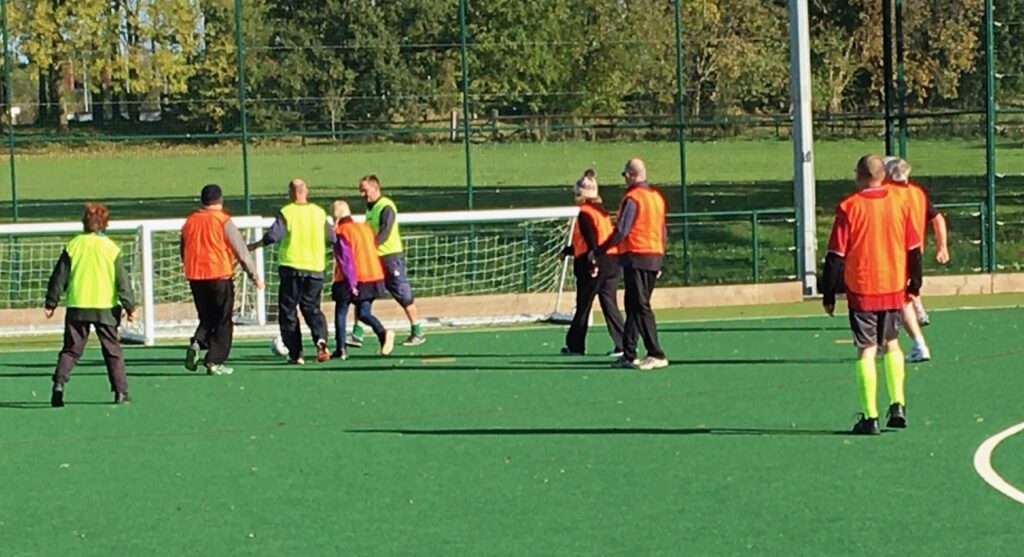 Off the back to this success, Alan has started up some other sports. He’s looking into Walking Sport Programmes for tennis and cricket, but football is starting to pick up quite well recently. At the time of the interview (October 2019), he and his team mates were into their second week of participation. At this point we have a conversation about the mental and physical health benefits for this. Even though most of those who turn up have been told, or feel that they are no longer able to run they can still move about and socialise, keeping the cognitive skills active and exercising in a manner that suits the individual. Alan tells me that at the football initiative a fellow with Alzheimer’s came along in the first week. He did so again the following week and remembered Alan’s name. This man’s wife came over at the end of the practice to speak of her pleasant surprise at her husband’s recall. Due to his condition, one that they had been living with for a number of years, they had been looking for an outlet for a while. Apparently, this guy had been excitedly getting ready for two days and that they will definitely be coming down again. With Alzheimer’s repetition of familiar things from the person’s youth can have benefits on his or her life, as can some light exercise. Therefore Walking Sports can provide improvements to the standard of life, not only for those suffering from the condition, but also those around them. Alan has been working alongside social support departments within the National Health Service in order to provide a ‘holistic toolset’ for those who come down, with a view of providing a part of the jigsaw towards a healthy lifestyle for people with particular needs.